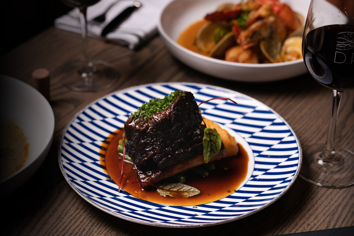 DRIFT presents a modern American menu with global influences, nestled within a landmark building in the heart of Weehawken’s Lincoln Harbor district. Featuring NJ's only rotating dining experience with breathtaking views of the iconic New York City skyline. The restaurant features a stunning mid-century modern aesthetic, inspired by Henry Hudson’s modern Dutch vessel. Our menu celebrates bold flavors and thoughtful craftsmanship. Guests can begin with shareable favorites such as whipped house-made ricotta with focaccia, black truffle Gruyère croquettes, and handcrafted wood-fired flatbreads with perfectly blistered crusts, or explore our curated sushi and raw bar offerings. Signature entrées include house-made pappardelle with Hudson Valley duck confit, lobster bouillabaisse, bone-in short ribs finished with our signature Drift Five Spice, miso-glazed black bass, and coffee-rubbed Snake River Farms outside skirt steak. We warmly invite you to savor a truly unique experience on your next visit.